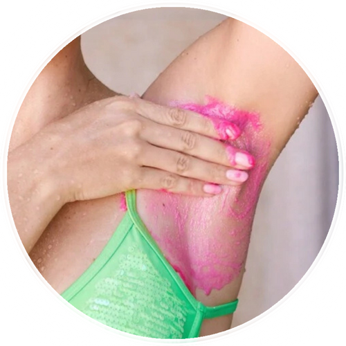 A esfoliação deve ser feita logo antes da depilação, sobre a pele limpa e ligeiramente úmida. Recomendamos fazer 2 a 3 vezes por semana, mesmo que você se depile com mais frequência. Isso prepara a pele de forma eficaz, sem agredi-la.